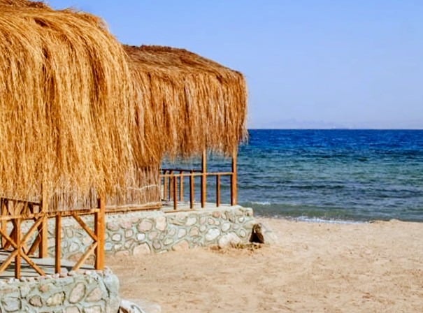 Szálljon meg hangulatos bungalókban közvetlenül Ras Shitan lenyűgöző Vörös-tengeri strandján.