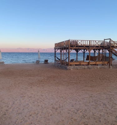 Hangulatos bungalóink közvetlenül a Vörös-tenger partján.